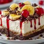 Before serving, adorn each square with a bright maraschino cherry for that iconic, eye-catching banana split look. Now you’re ready for ultimate dessert bliss!