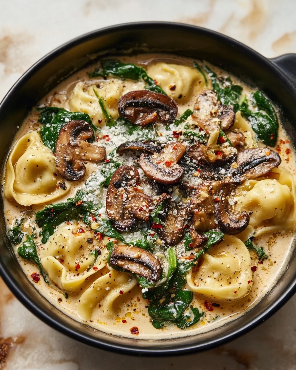 These simple, wholesome ingredients are all you need to create a dish that bursts with flavor, color, and texture. From the earthy mushrooms to the vibrant spinach and sharp Parmesan, each component plays a starring role in this pasta sensation.