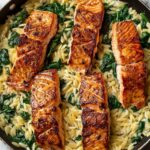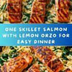This One Skillet Salmon with Lemon Orzo recipe is a delicious and healthy main course that combines perfectly seared salmon fillets with creamy lemon-infused orzo pasta. Prepared entirely on the stovetop in a single skillet, it offers a quick and easy meal packed with fresh flavors from garlic, lemon, and parsley, making it an ideal weeknight dinner option.