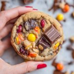 These Outrageous Pretzel Reese’s Peanut Butter Cookies are a delightful combination of salty, sweet, and chocolatey flavors packed into chewy, rich peanut butter cookies. Loaded with mini Reese’s Peanut Butter Cups, Reese’s Pieces, pretzels, peanut butter chips, dark chocolate chips, and optional roasted peanuts, these cookies satisfy all cravings with a perfect chewy texture and a touch of crunch.