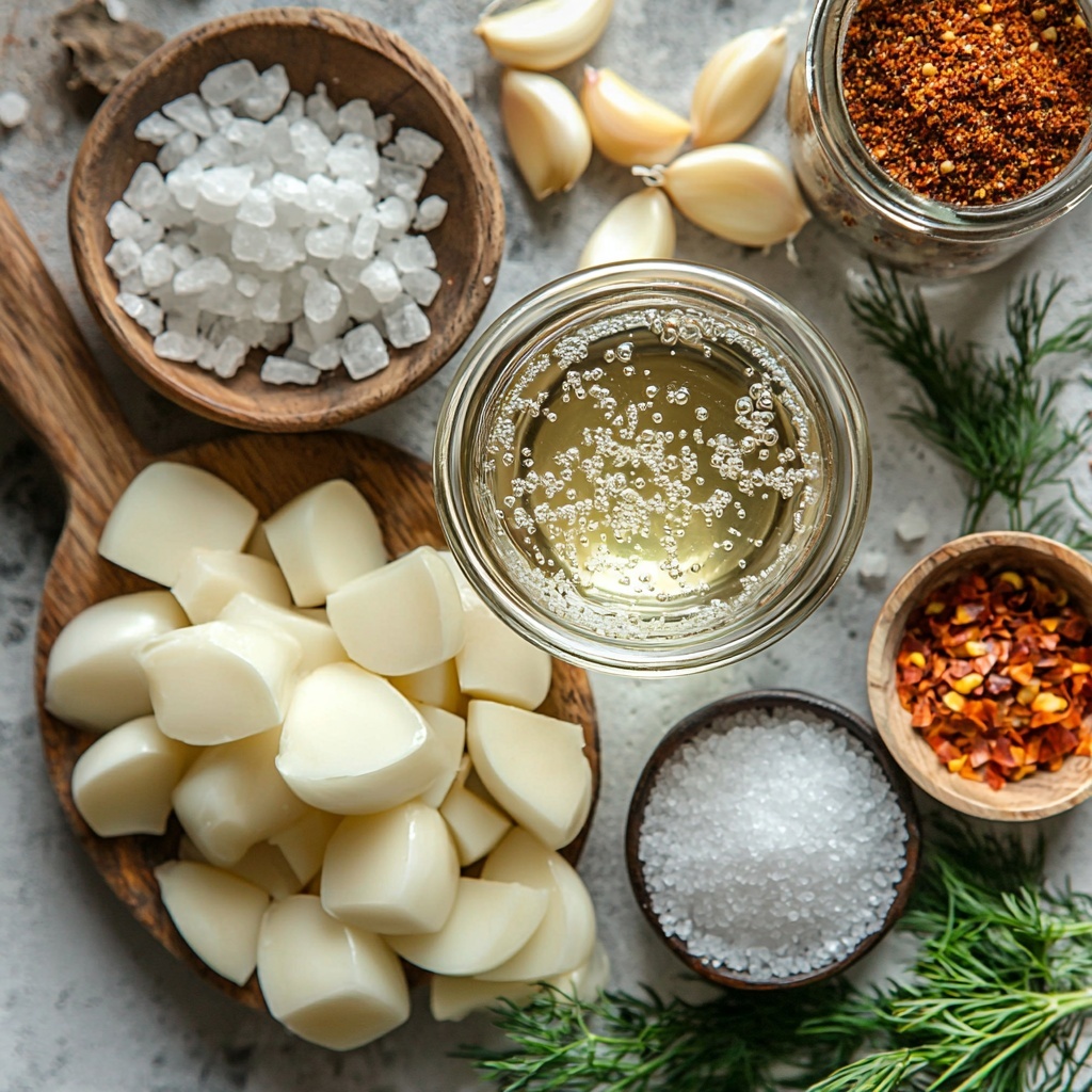 These ingredients are refreshingly simple but pack a punch in flavor and texture. Each one is essential to achieving that perfect balance of tanginess, spice, and herbaceous aroma that makes this Quick Pickled Garlic Recipe so addictive.