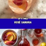 This refreshing Rosé Sangria blends dry rosé wine with elderflower liqueur, brandy, fresh lemon juice, and a hint of sweetness from granulated sugar. Enhanced with ripe peach slices and fresh raspberries, it’s refreshed with club soda to create a light and bubbly summer cocktail perfect for gatherings.