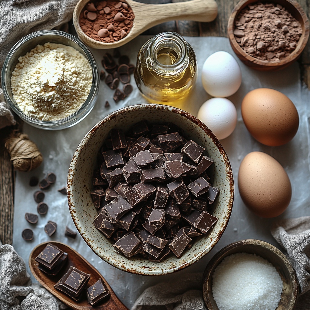 - 8 oz dark chocolate chips or semi sweet (chunks): The star ingredient for intense chocolate flavor and smooth fudginess.