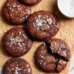 These Sea Salt Brownie Cookies combine the rich, fudgy texture of a brownie with the convenience of a cookie. Featuring a crackly top and a soft, chewy interior, they are garnished with a sprinkle of sea salt flakes for a perfect balance of sweet and savory. With dark chocolate, cocoa powder, and a hint of vanilla, these cookies are an indulgent treat that can be enjoyed any time.