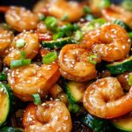 A flavorful and healthy Shrimp and Zucchini Stir Fry featuring a homemade teriyaki sauce. This quick and easy Asian-inspired dish combines tender shrimp, fresh zucchini, and vibrant bell peppers, all tossed in a sweet and savory teriyaki glaze. Perfect for a nutritious weeknight dinner and customizable to suit gluten-free or vegetarian preferences.