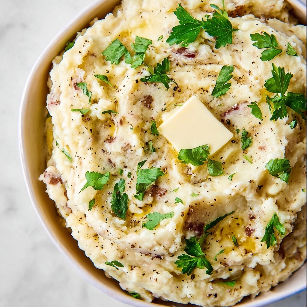 For a lovely presentation, scoop the mashed potatoes into a serving bowl and create pretty peaks with the back of a spoon, then drizzle melted butter over the top. Alternatively, pipe the warm mashed potatoes into individual ramekins for a charming touch at dinner parties. You can also turn leftovers into loaded potato cakes or top with gravy and cheese for a quick, comforting meal.