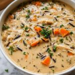This Slow Cooker Creamy Chicken and Wild Rice Soup is a hearty and comforting meal perfect for chilly days. Tender chicken breasts, wild rice, and fresh vegetables simmer together in fragrant herbs and rich chicken broth. A luscious creamy roux made with butter, flour, whole milk, and heavy cream is stirred in at the end, adding velvety texture and warmth to each bowl. Made in a slow cooker with minimal prep, this soup allows flavors to meld beautifully over several hours, delivering a satisfying and nourishing experience without fuss.