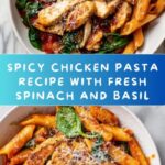 This Spicy Chicken Pasta recipe combines tender, seasoned chicken breasts with a flavorful tomato-based sauce infused with garlic, smoked paprika, and a kick of cayenne pepper. Tossed with al dente pasta, fresh spinach, and basil, it’s a vibrant and satisfying meal perfect for a quick weeknight dinner that serves four.