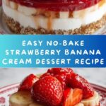 A light and creamy no-bake strawberry banana cream dessert featuring layers of instant vanilla pudding, whipped cream, fresh fruit, and a graham cracker crust. Perfect for a refreshing summer treat or an easy-to-make dessert that requires minimal preparation and no oven time.