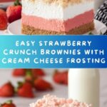Strawberry Crunch Brownies are a delightful twist on classic brownies, combining the sweet flavors of strawberry cake mix with creamy white chocolate, tangy cream cheese frosting, and a crunchy strawberry-coated cookie crumble topping. This easy-to-make dessert is perfect for gatherings and treats, offering a luscious creamy layer and a satisfying crunch with fresh strawberry garnish options.