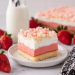 If you have a sweet tooth that craves a burst of fruity joy mixed with rich, creamy indulgence, then you are absolutely going to fall head over heels for this Strawberry Crunch Brownies Recipe. Imagine moist, tender strawberry cake layers infused with pockets of gooey white chocolate, topped with a light and fluffy cream cheese layer, and finished with a crispy, strawberry-swirled cookie crunch that adds the perfect texture contrast. It’s a dessert that brings together the nostalgic flavors of summer strawberries and decadent brownies in one unforgettable bite. Whether you bake it for a family gathering or a treat-yourself moment, these brownies are guaranteed to wow every palate.