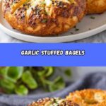 These Stuffed Bagels are a deliciously savory treat featuring soft bagels filled with sweetened cream cheese and topped with a flavorful garlic herb butter mixture. Perfect for breakfast or a snack, they bake to golden perfection with a delightful blend of parmesan and everything bagel seasoning.