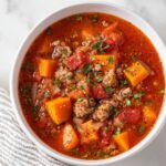 This Sweet Potato Chili is a hearty and comforting dish featuring mild Italian sausage, tender sweet potatoes, and a rich blend of spices simmered in a savory tomato and chicken broth base. Perfect for a cozy dinner, it balances sweetness and spice to create a flavorful chili that’s both nourishing and satisfying.