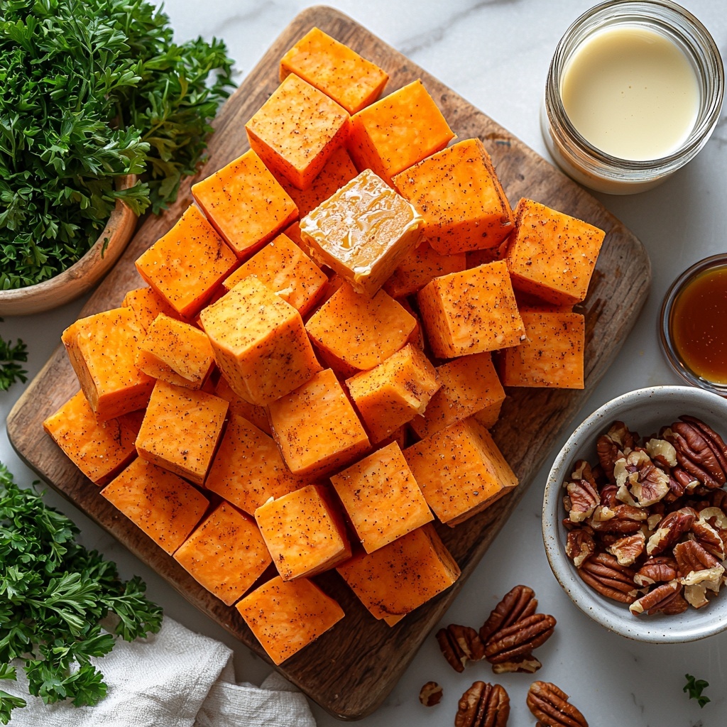 Start by peeling your sweet potatoes using a vegetable peeler, then cut them into generous 1-inch cubes. The size helps them cook evenly and become irresistibly tender.
