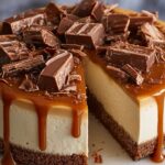 - Serve and garnish: Before serving, drizzle additional caramel sauce over the top of the cheesecake. Garnish with extra whipped cream and sprinkle with more toffee bits for added texture and flavor. Slice and enjoy!