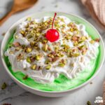 A classic and refreshing Watergate Fruit Salad featuring instant pistachio pudding, crushed pineapple, mini marshmallows, and whipped topping, garnished with crunchy pistachios and maraschino cherries. This easy no-cook dessert is perfect for potlucks, family dinners, or holiday gatherings.