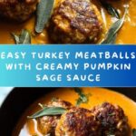 Delicious and comforting turkey meatballs baked to perfection and served with a creamy pumpkin sage sauce, perfect for a cozy autumn meal.