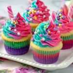 There is something truly special about baking and sharing these Unicorn Cupcakes Recipe. Their playful colors, delicious vanilla flavor, and charming presentation make them a guaranteed hit wherever they appear. Whether it’s for birthdays, holidays, or just a spark of joy on a regular day, give this recipe a try and watch how it brings smiles, magic, and maybe even a little sparkle into your kitchen and beyond!