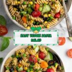 This pasta salad keeps really well in an airtight container in the fridge for up to 3 days. Give it a quick stir before serving to redistribute the dressing and freshen up the veggies.